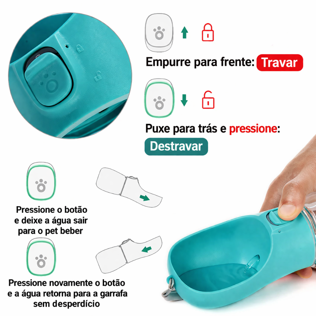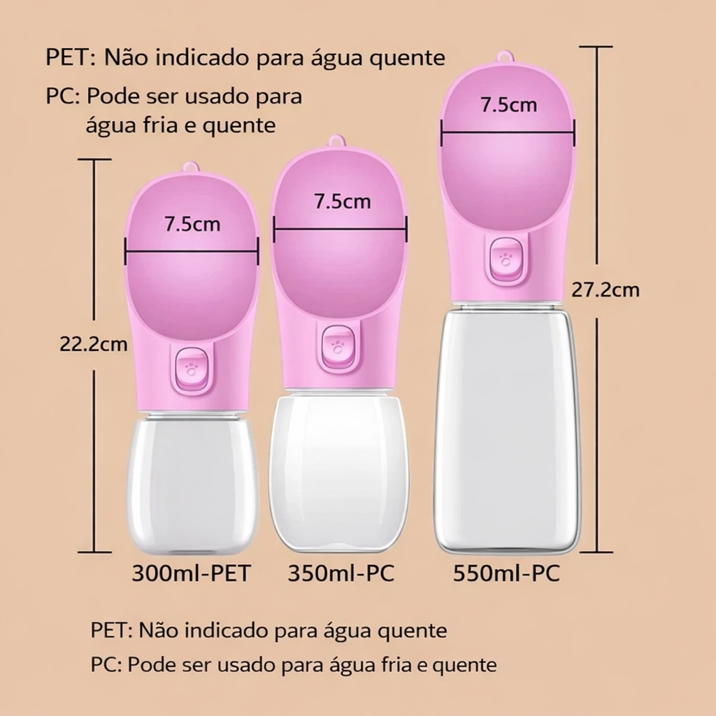Leve, prática e segura, ela foi criada para garantir hidratação rápida e confortável para seu pet, onde você estiver.