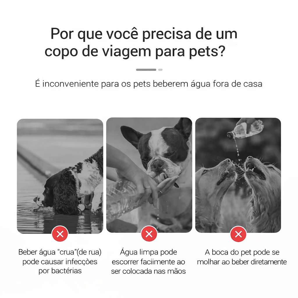 Enquanto outras garrafas vazam ou são difíceis de usar, a HydraPet Pro™ foi pensada para facilitar sua vida e cuidar melhor do seu pet.